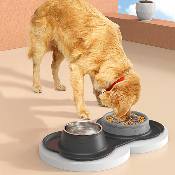 不鏽鋼狗慢食碗-硅膠底座寵物雙碗