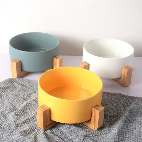1. 高品質陶瓷&木材製成的貓寵物碗,提供舒適用餐體驗。