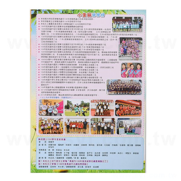 1. 高品質150P銅版A4校刊,展現獅湖國小專屬風采。
