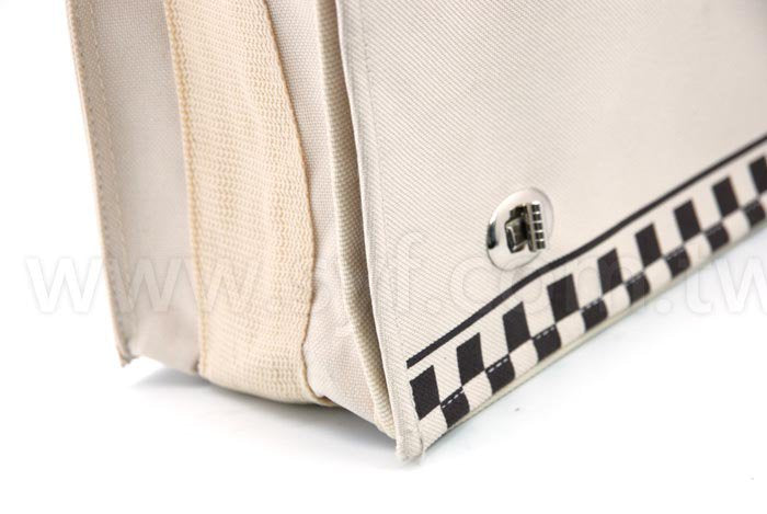 4. 印刷方式為單面單色,配件有拉鍊和轉鎖。