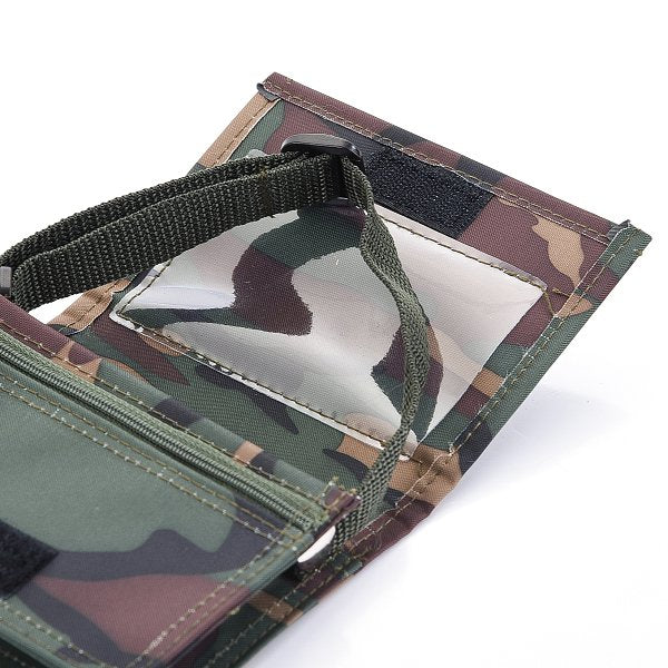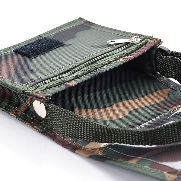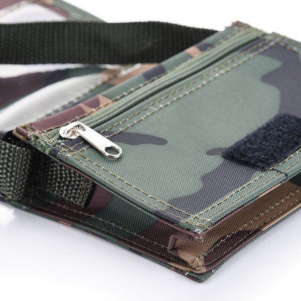 1. 迷彩布色小書包,尺寸13x9x4公分,簡潔大方白色Logo印刷,展現專業形象。