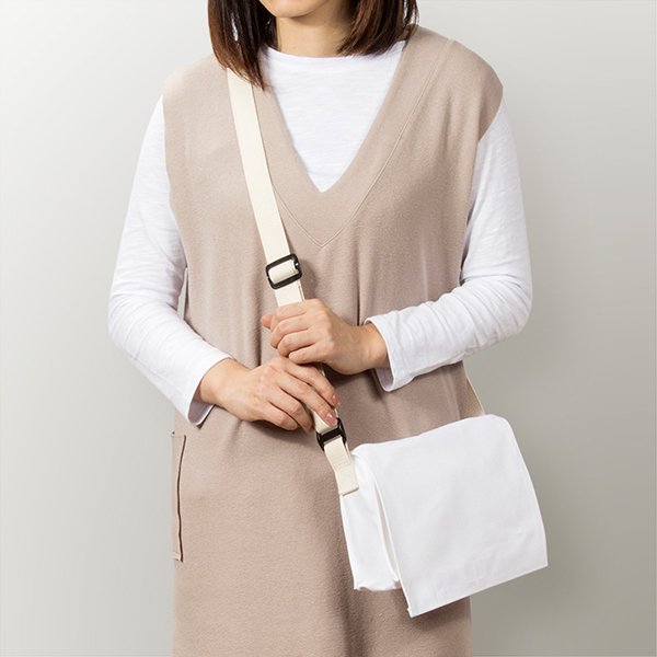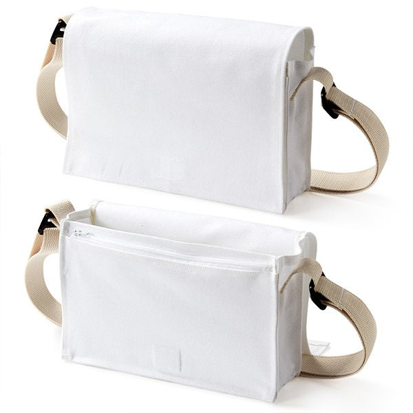 色帆布書包-中型斜揹書包/拉鍊夾層+漂白色-單面單色印刷