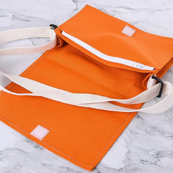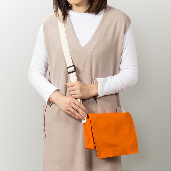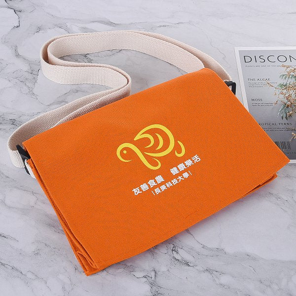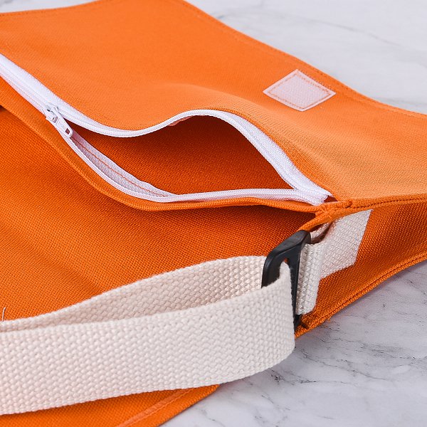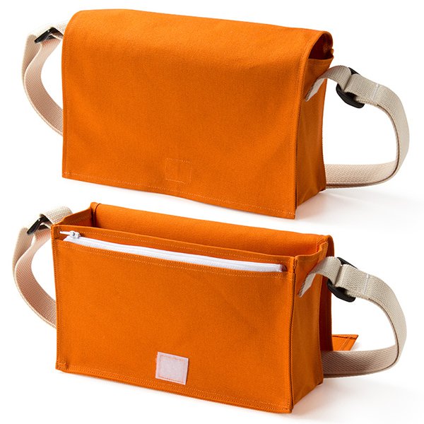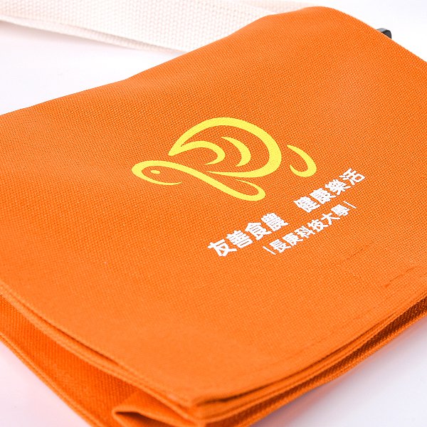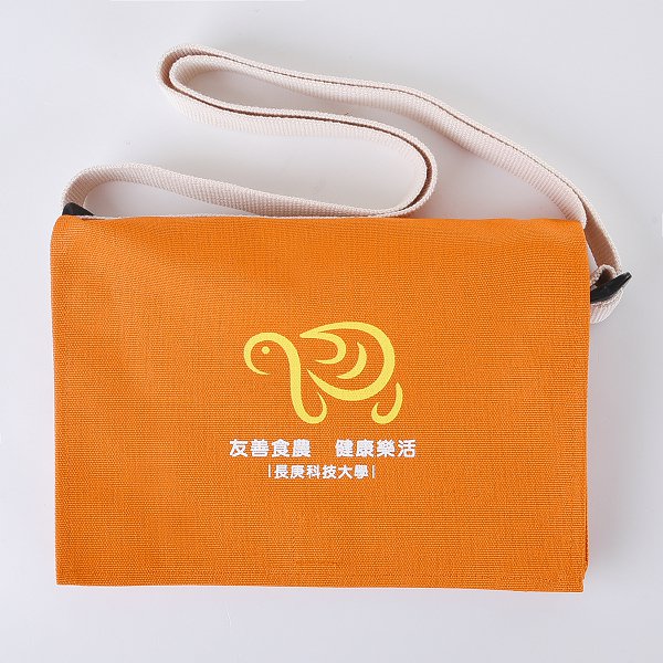 色帆布書包-中型斜揹書包/拉鍊夾層+染橘色-單面單色印刷