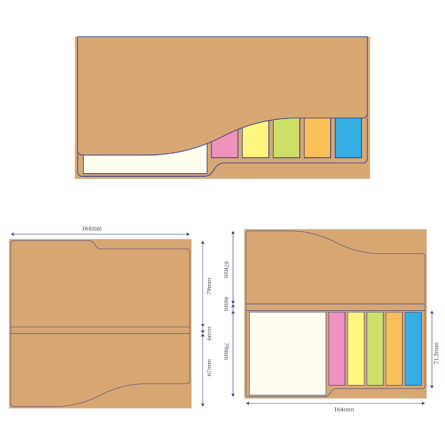二合一牛皮紙封面便利貼-7.9x16.4cm-封面單色/內頁無印(平頭色紙五色標)