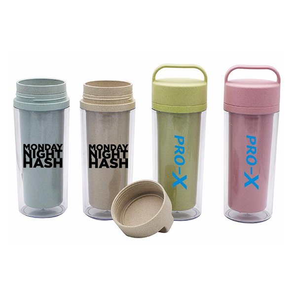1. 300ml雙層小麥桔梗隨手杯,尺寸為6.8*19cm,材質為小麥,容量達300ml,重量輕巧只有176g。