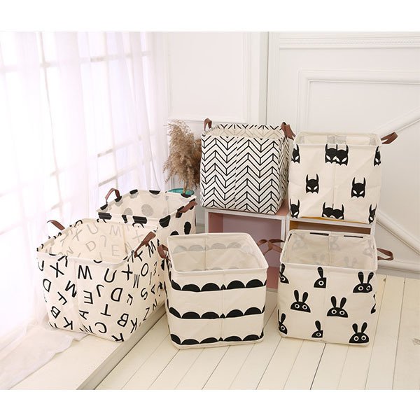北歐風幾何圖案收納籃-帆布可摺疊洗衣籃