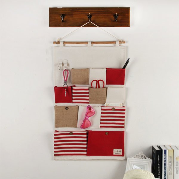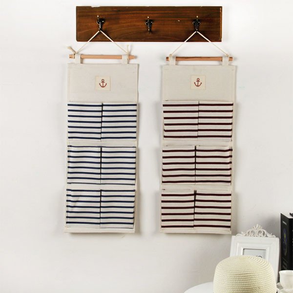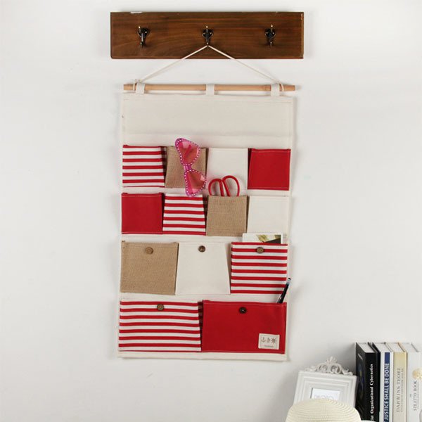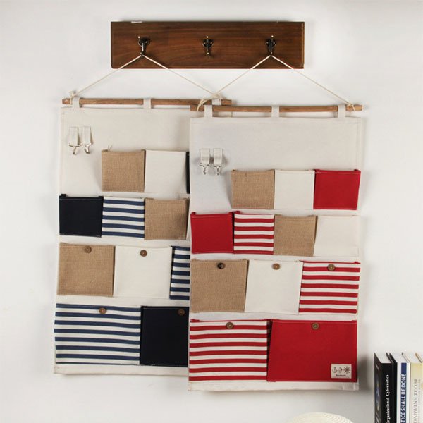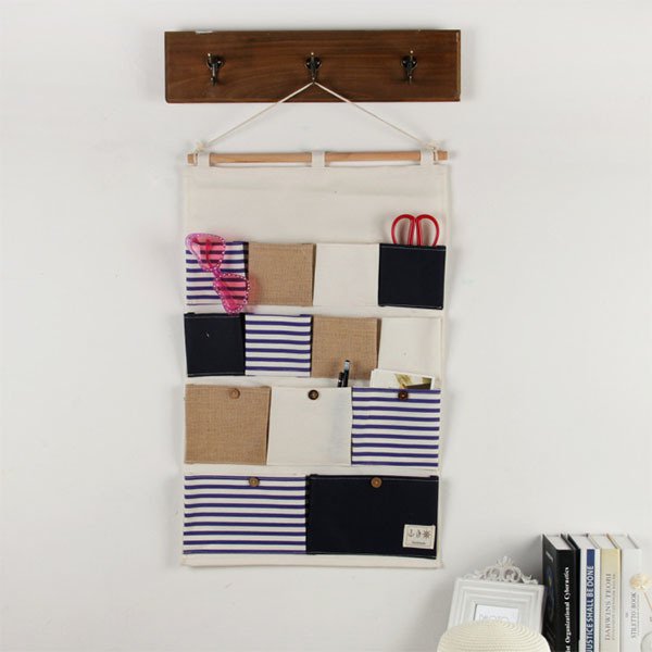 簡約多口袋收納籃-棉麻懸掛式置物籃