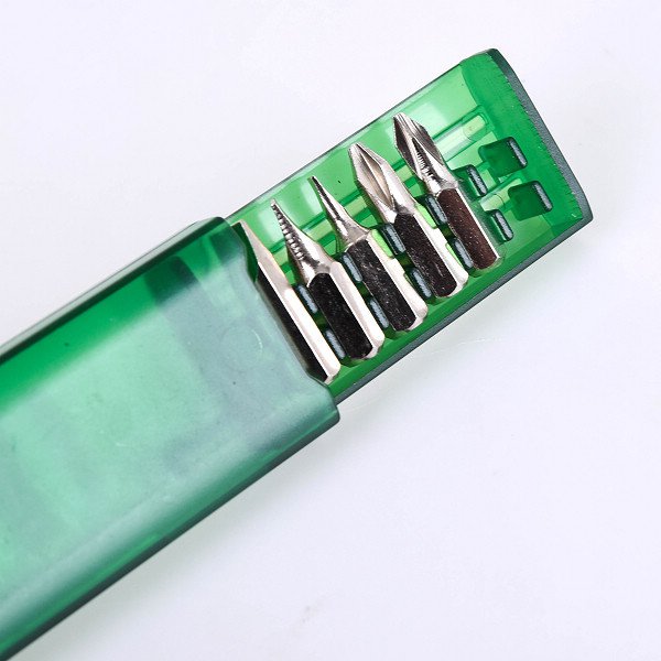 1. 六合一磁吸式螺絲起子組,尺寸為3.3*9.8*1.4cm,方便攜帶修理家中小物件。