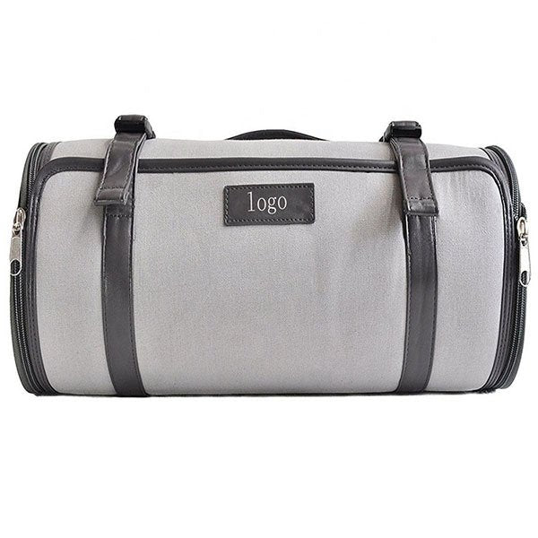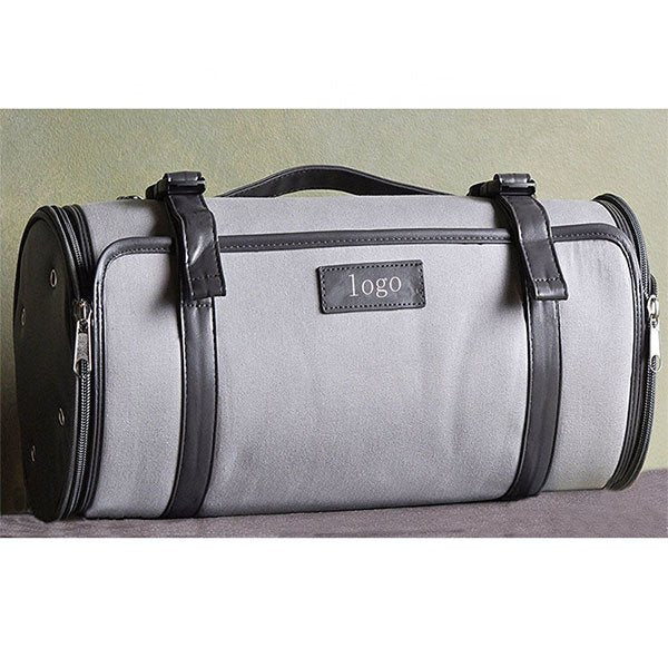 1. 可摺疊圓筒工具袋採用帆布和皮革材質,尺寸可客製化,帆布捲防水且耐用。
