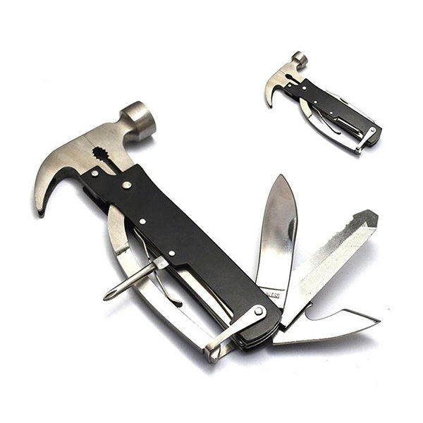 1. 不銹鋼多功能錘子,結合錘、刀、螺絲刀功能,材質堅固耐用,適用於商務禮贈及家庭維修需求。