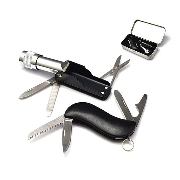 1. 多功能工具組,材質堅固耐用的不銹鋼製成,保證您在野外探險時的安全與便利。
