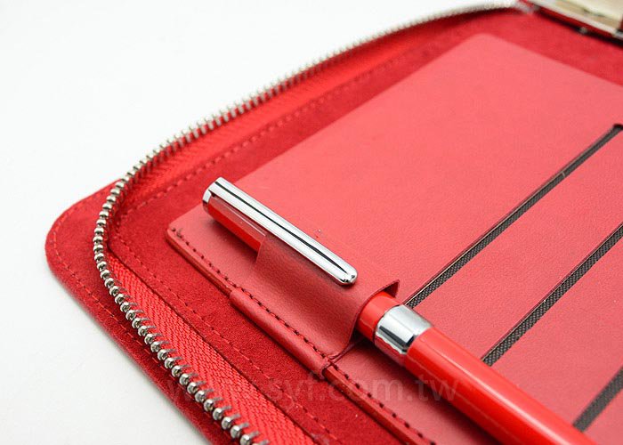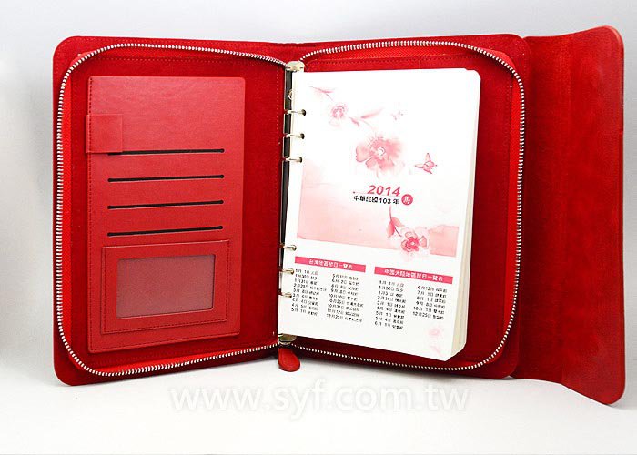 亮彩皮紋工商日誌-三折式拉鍊包活頁筆記本-客製化LOGO