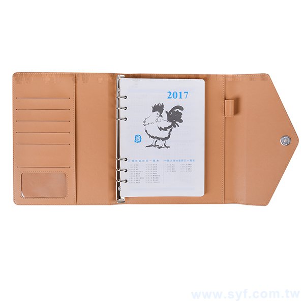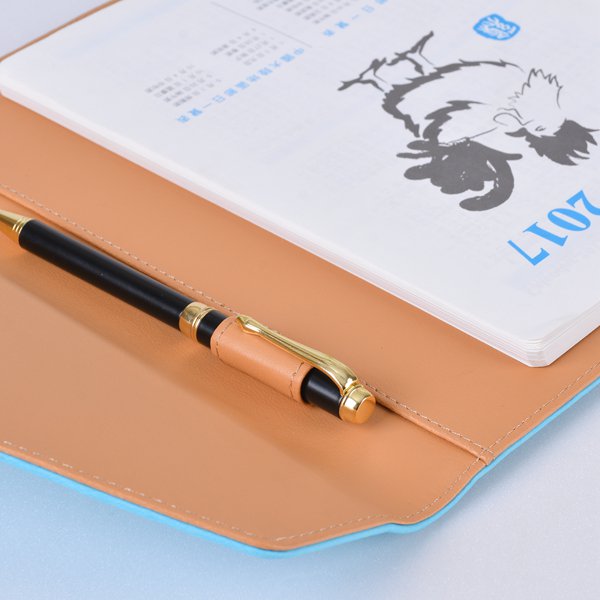 2. 封面PU皮革設計,活頁筆記本方便翻閱,內頁可客製廣告頁,提升品牌形象。