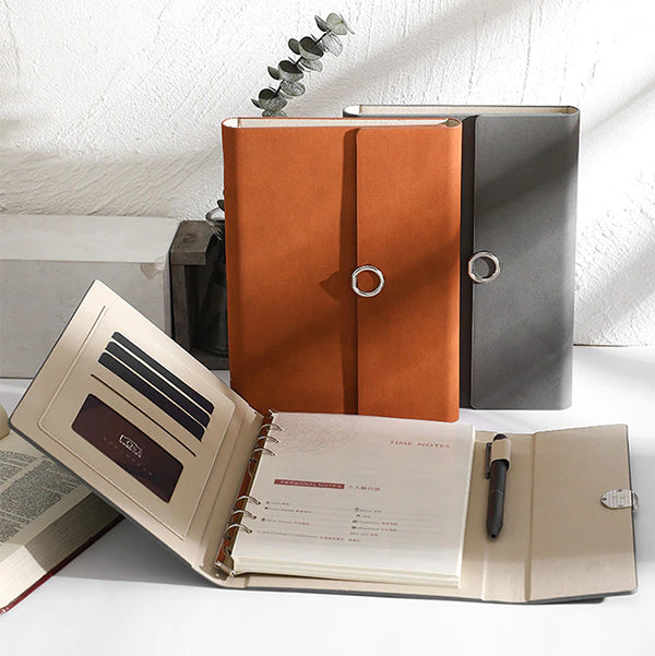 2. 封面採用PU皮革設計,高貴大方,活頁夾設計更加實用,讓您的筆記本更加整潔有序。