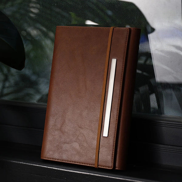 1. A5輕奢辦公商務三折式PU皮工商日誌,尺寸適中,適合辦公室或商務場合使用。