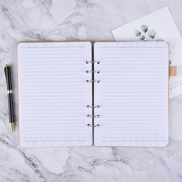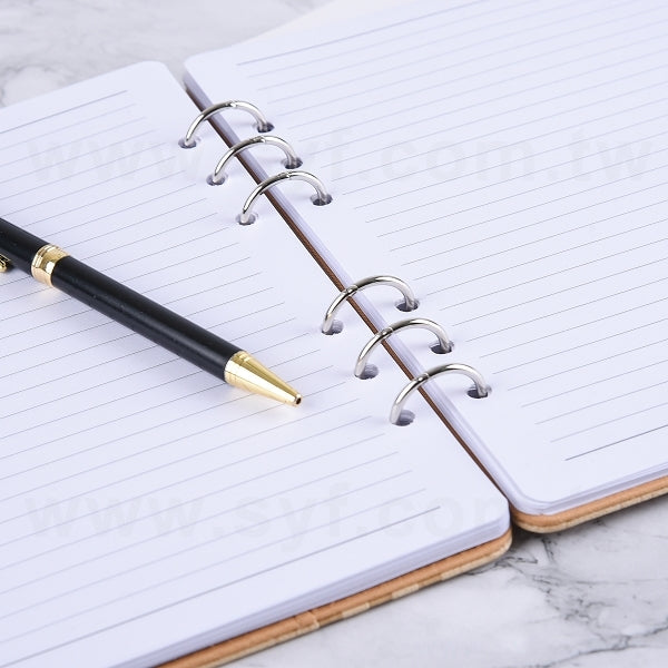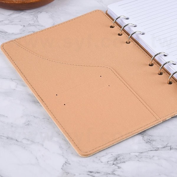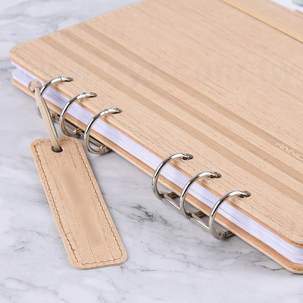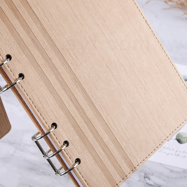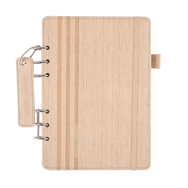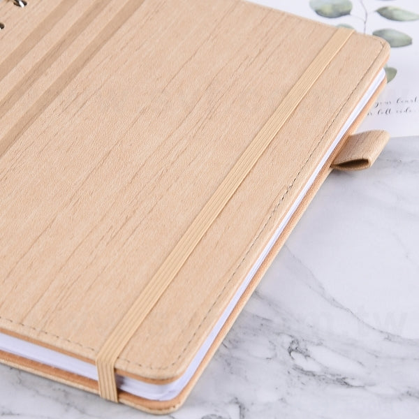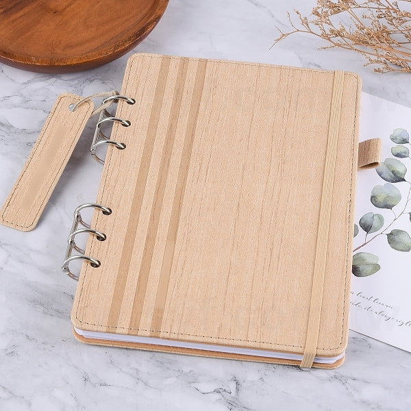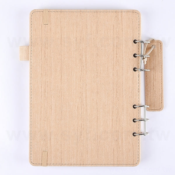 25K 仿木紋PU皮6孔活頁工商日誌-翻開式筆記本
