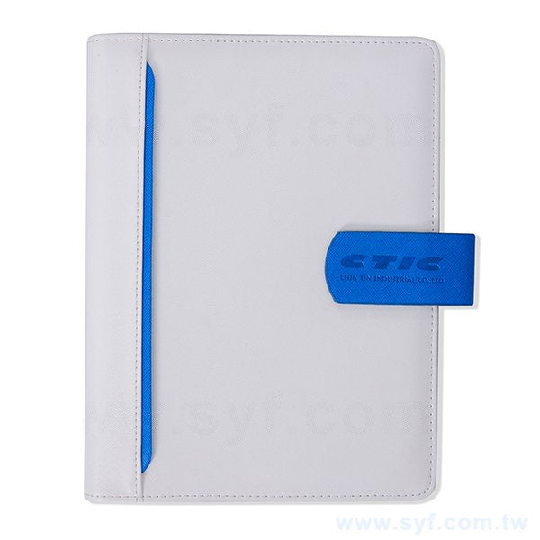 25K素白典雅工商日誌-藍白撞色磁扣活頁筆記本-可訂製內頁及客製化加印LOGO
