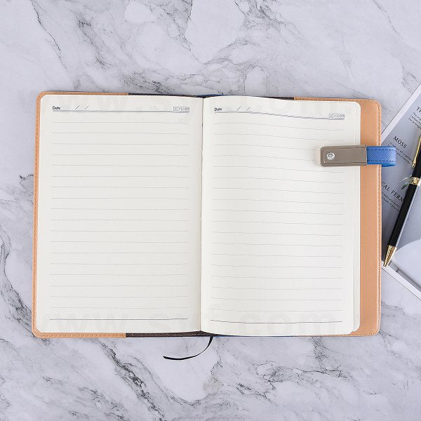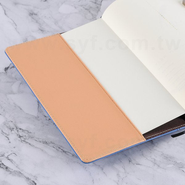 1. 25K筆記本尺寸適中,PU皮革封套高貴大方,客製廣告頁展現企業形象。