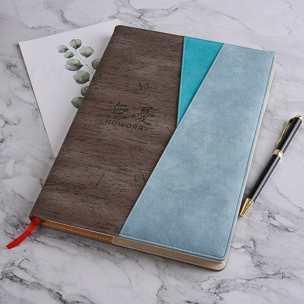 1. 16K拼接工商日誌,尺寸適中,方便攜帶。封面PU皮革設計,高貴大方。
