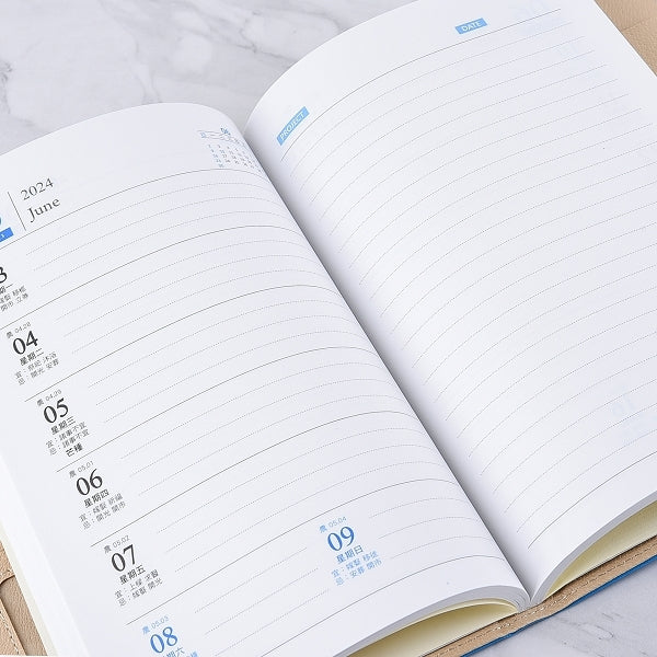 2. 25K筆記本可選PU皮革或封套封面,多樣皮面加工,左三右四內頁設計方便筆記整理。