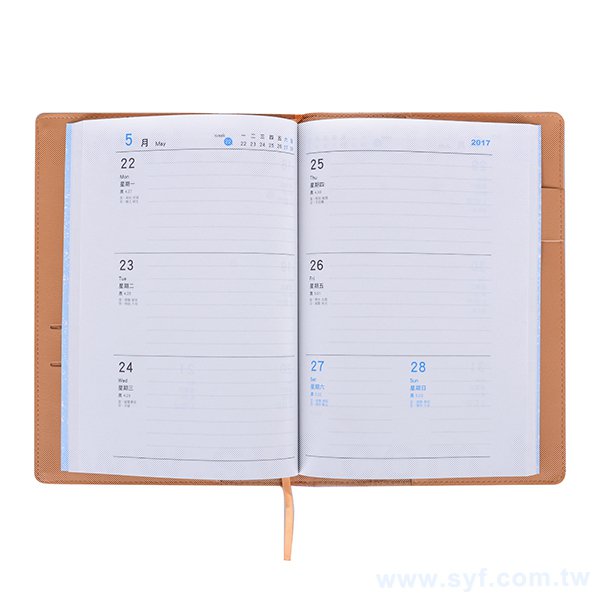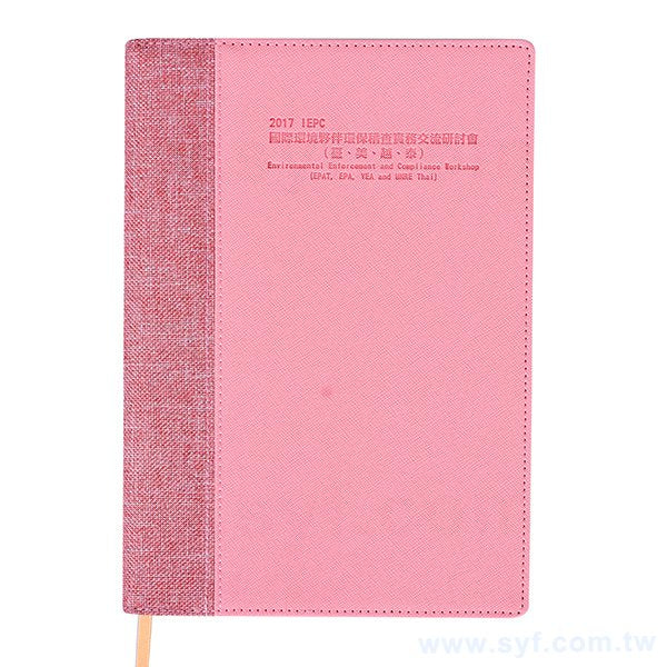 25K雙色拼布精裝工商日誌-翻開式平裝萬用手冊-可客製化內頁及印LOGO-粉色