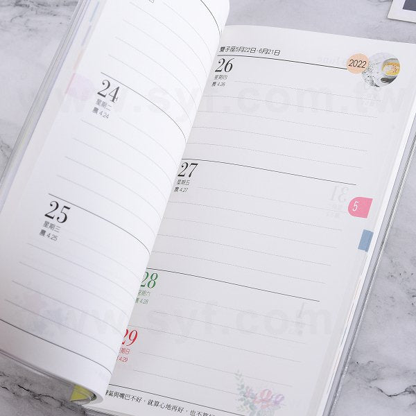 1. 48K工商日誌,專為企業客製化設計,展現公司形象,適合商務使用。規格:48K工商日誌/彩色印刷,實際尺寸:10x17.8cm,材質:封面銅版紙