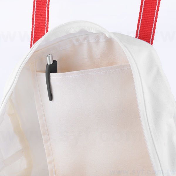 立體袋-12安-單面單色-圓型帆布袋-拉鍊功能-外口袋內袋