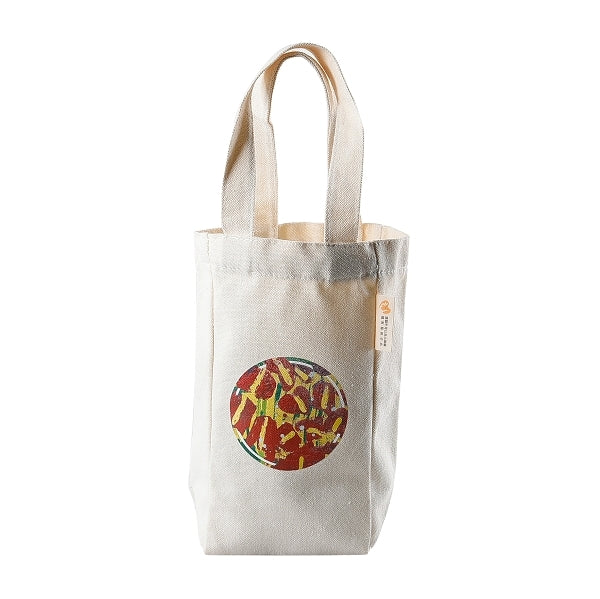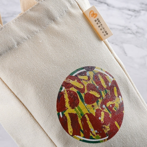 1. 客製化12OZ帆布袋,尺寸為W12.5XH25XD8.5公分,提繩2.5X34公分(外露)/2.5X40公分(含車縫),印刷單面直噴彩印(面積約9*9公分),布標4*1.5公分/雙色。
