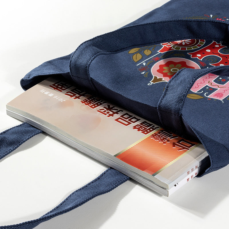 深藍色帆布袋25x35cm短提帶Logo全彩燙印