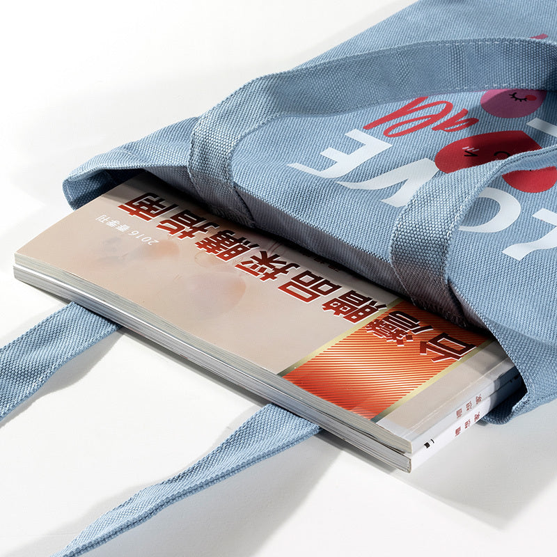 淺藍色帆布袋25x35cm短提帶Logo全彩燙印
