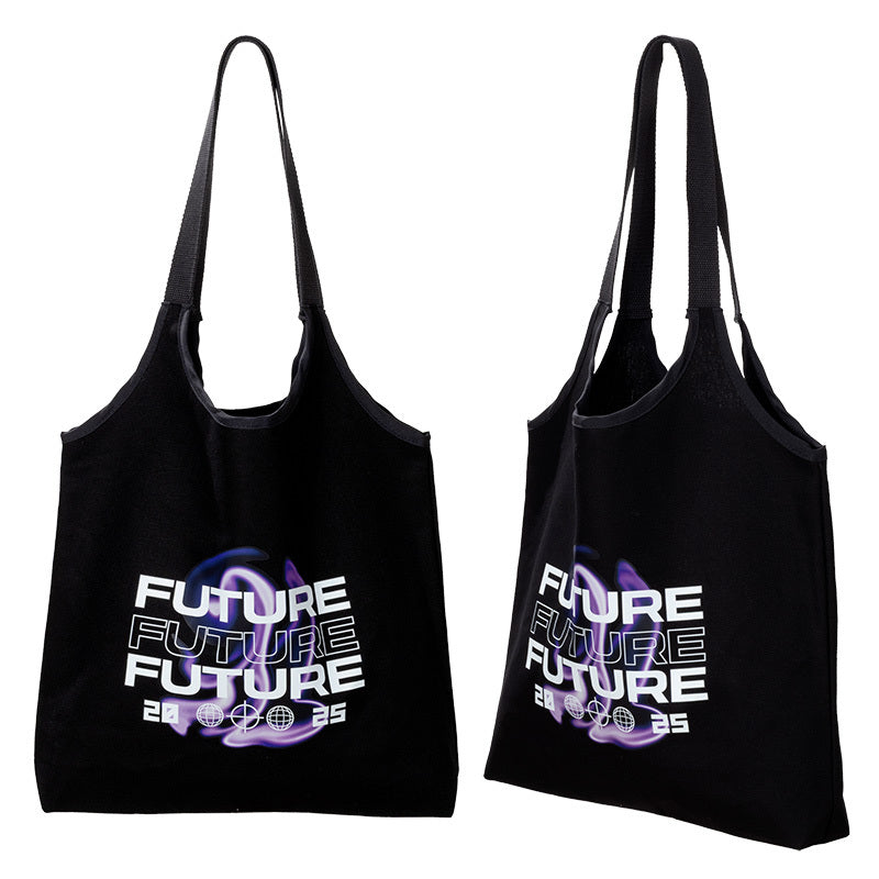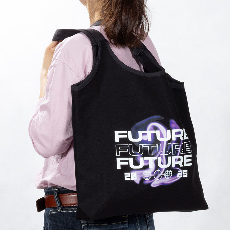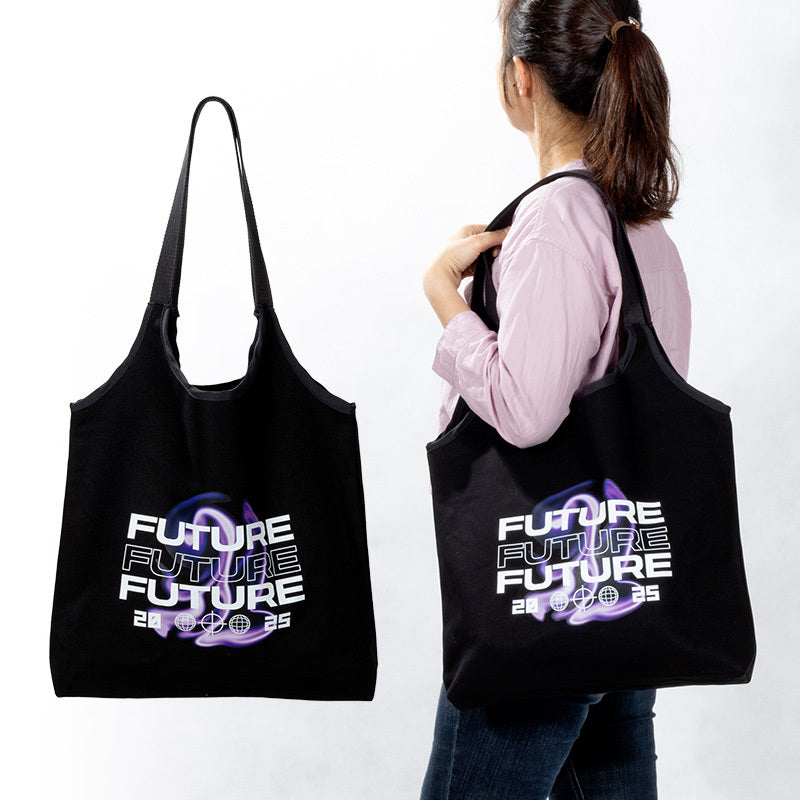 全彩燙印簡約風黑色帆布背心包-SB繩提把