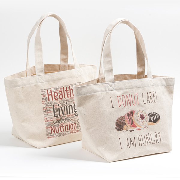 1. 帆布便當袋採用耐用帆布製作,適合作為公司禮贈品。尺寸為長37.5cm x 高21cm x 底寬16cm,可客製化彩色印刷。