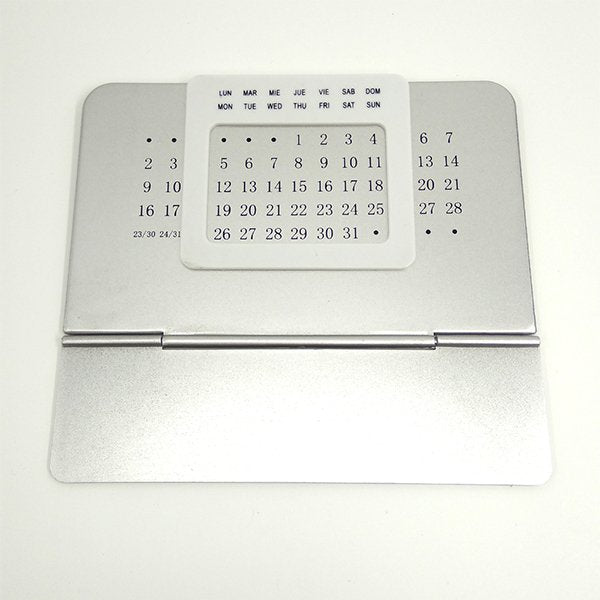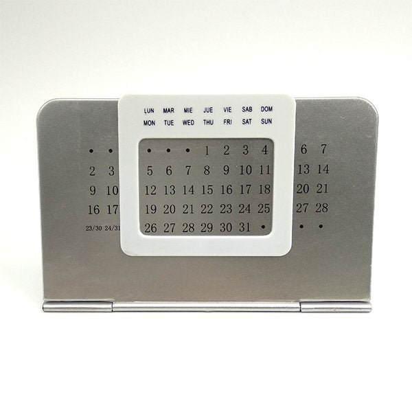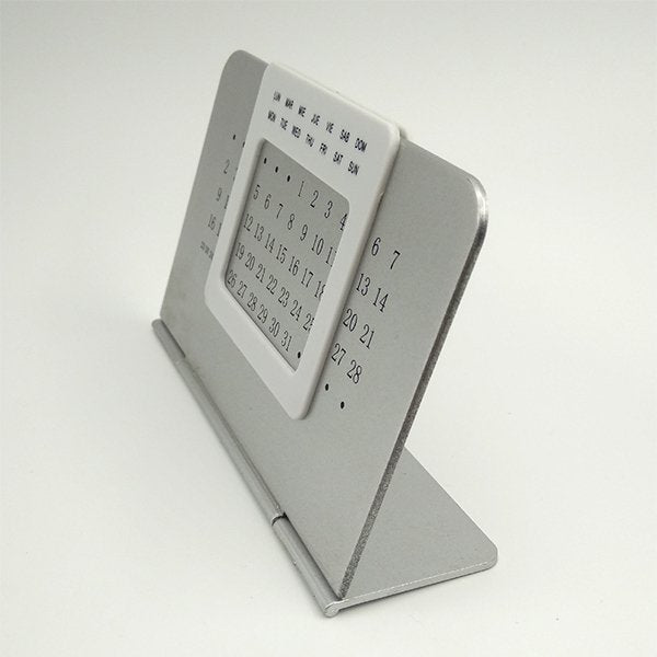 1. 簡約滑動式塑膠萬年曆,尺寸為14*12*0.2cm,材質為塑膠,方便擺放在辦公桌上提醒重要日期。
