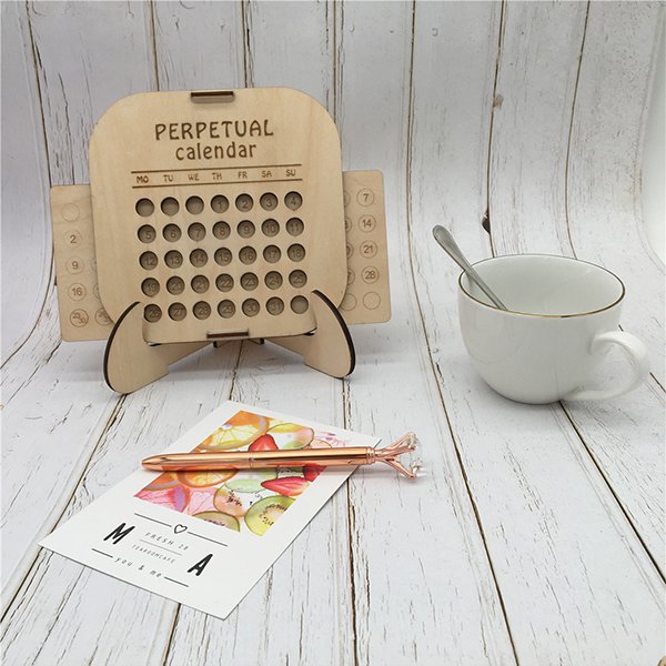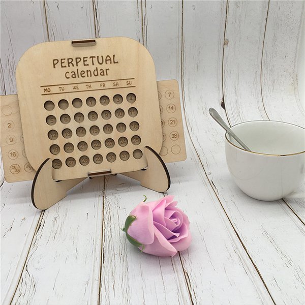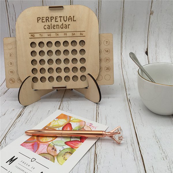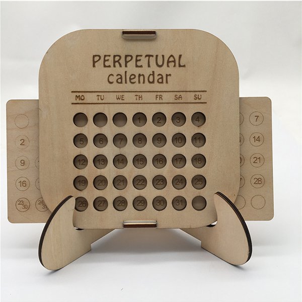 1. 雷射切割4mm木膠合板萬年曆,材質環保健康,尺寸20*16*1.1cm,適合辦公室使用,提醒每日行程,增添效率。