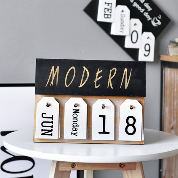 1. 現代紙卡式木製萬年曆,簡約時尚設計,適用於辦公室或家居使用。