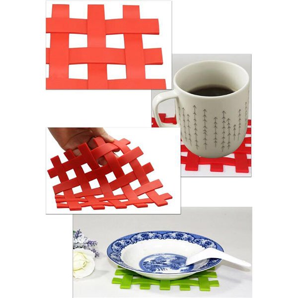 1. 編織網狀矽膠杯墊,尺寸17.3*17.3cm,適合辦公室、會議室使用。