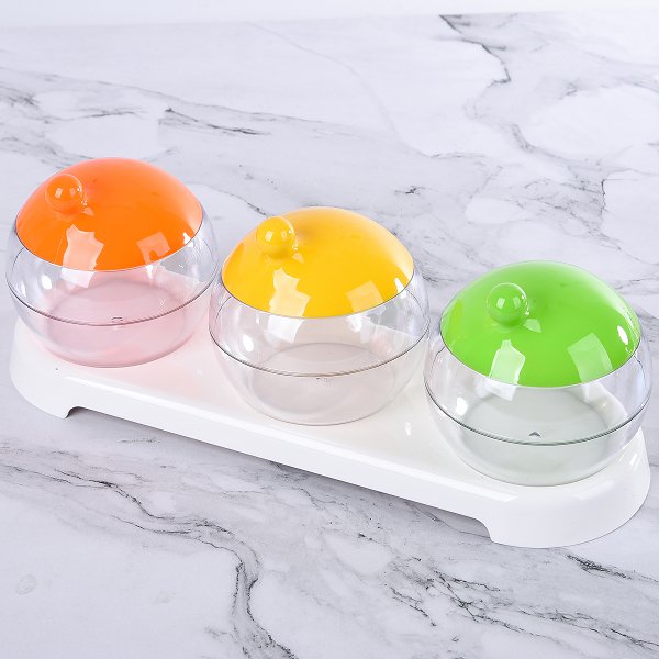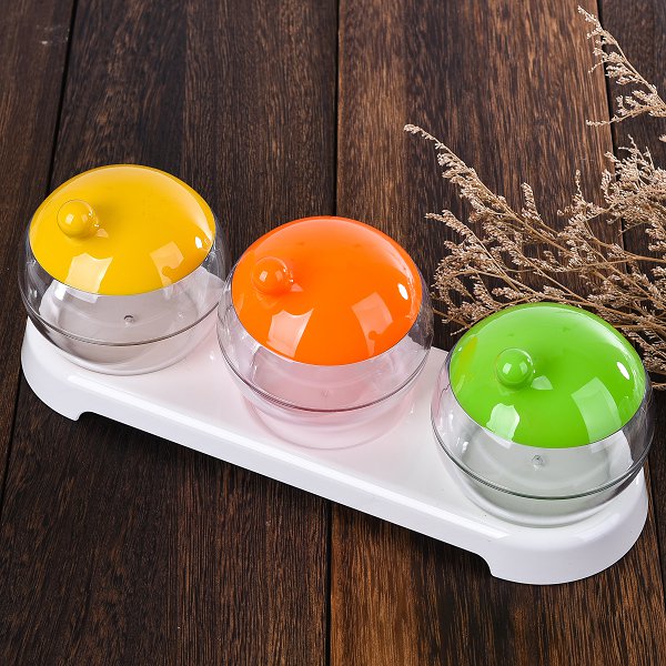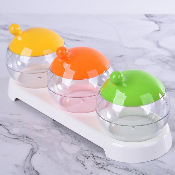 1. 圓形AS調味罐-3入組,尺寸為255*82*100mm,底盤為255*85*20mm,容量為170ml,適合存放各種調味料。