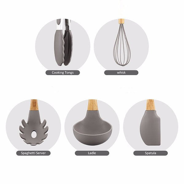 5. 這套矽膠不沾鍋廚具鍋鏟組,結合實用性與美觀性,是廚房必備的好幫手。、