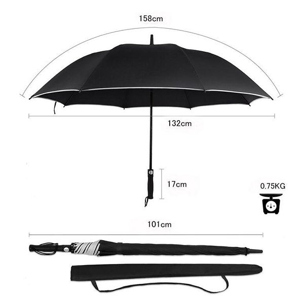 • 材質:190T春亞紡軸/骨架:玻璃纖維軸+8K鋁合金骨架尺寸:30吋(直徑130cm)開合方式:半自動