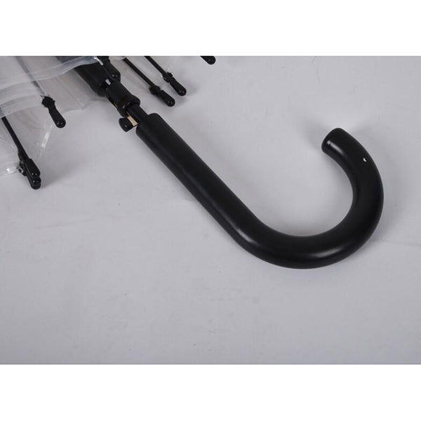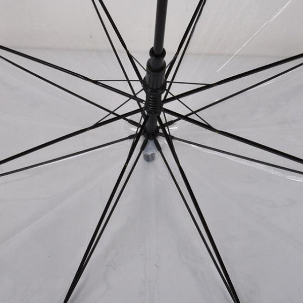 1. 23吋透明8骨堅固橡膠直傘,尺寸適中,方便攜帶使用。材質採用耐用的PVC,品質可靠。骨架設計為8骨,增加傘子的穩定性和耐用性。