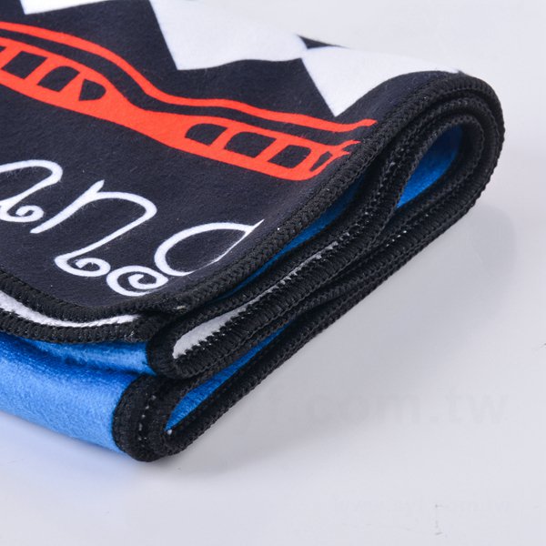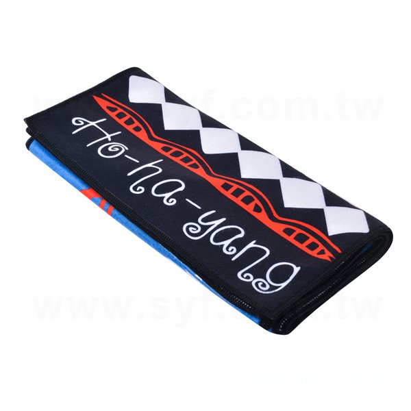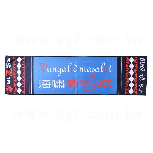 1. 運動毛巾尺寸為112x30cm,材質為超細纖維毛巾料,可客製化印刷企業LOGO或宣傳標語。