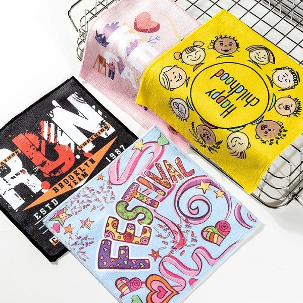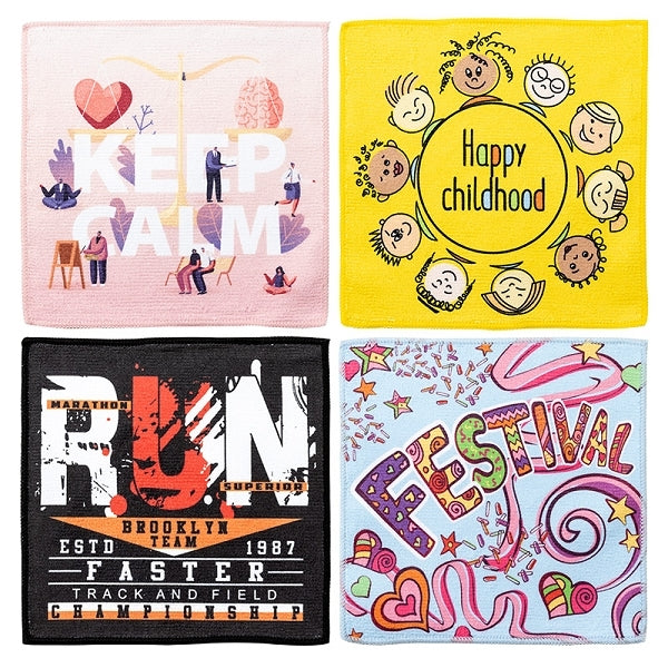 單面熱昇華小方巾/擦拭布,最符合經濟效益的幅寬為 19公分,規格品約為 19x19 公分,亦接受您的客製尺寸,昇華熱轉印可將您的全彩 LOGO完整於單面呈現 (背面為白色毛巾原色)。毛巾四邊預設以白色拷克線收邊,配合您的圖稿,亦接受其他色線且不加價。 此款產品無洗標,但可洗滌,說明:請用溫冷水手洗,第一次洗滌時避免浸泡,脫水後請不要放置,立即晾乾。 避免顏色轉移到其他衣物,請單獨洗滌。請避免使用熨斗。 請避免使用烘衣機。因雨或汗浸溼,或強烈摩擦時,會產生色移,請注意。