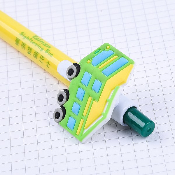 1. 造型廣告筆-PVC公仔筆管禮品,高約13.8cm,筆身黃色,筆蓋綠色,筆夾白色,獨特造型設計,適合企業宣傳禮品使用。