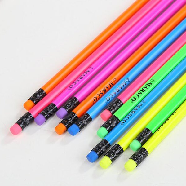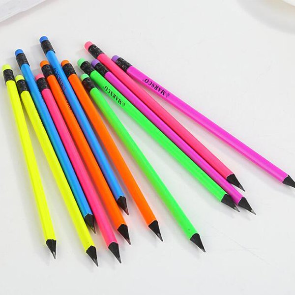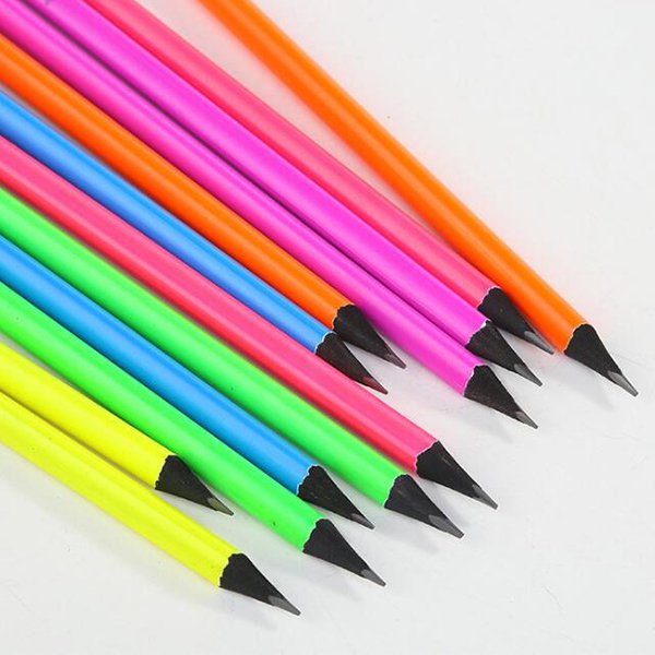1. 三角黑木螢光色筆桿鉛筆-HB,採用白楊木材質,質感優雅。