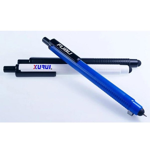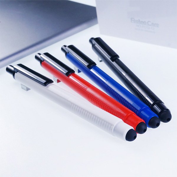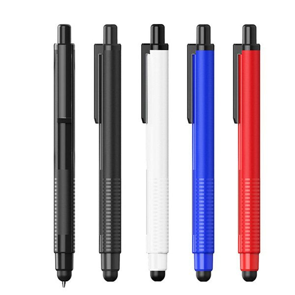 2. 多功能應用,按壓式塑膠圓珠觸控筆,筆芯按出可書寫,收起可當觸控筆使用,方便實用。