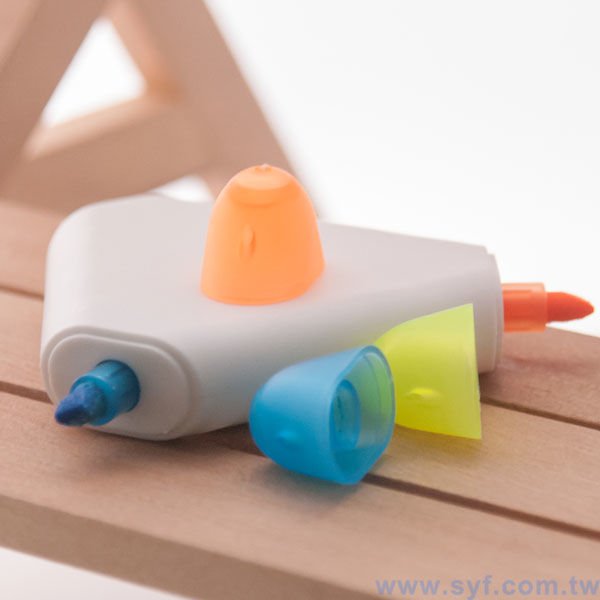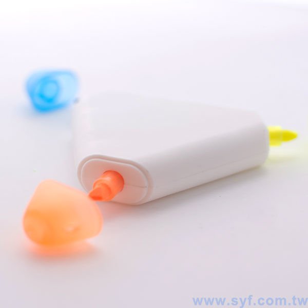 三角形造型三色螢光筆-開蓋式螢光筆-可客製化印刷logo