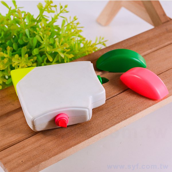 心形造型三色螢光筆-開蓋式螢光筆-可客製化印刷logo