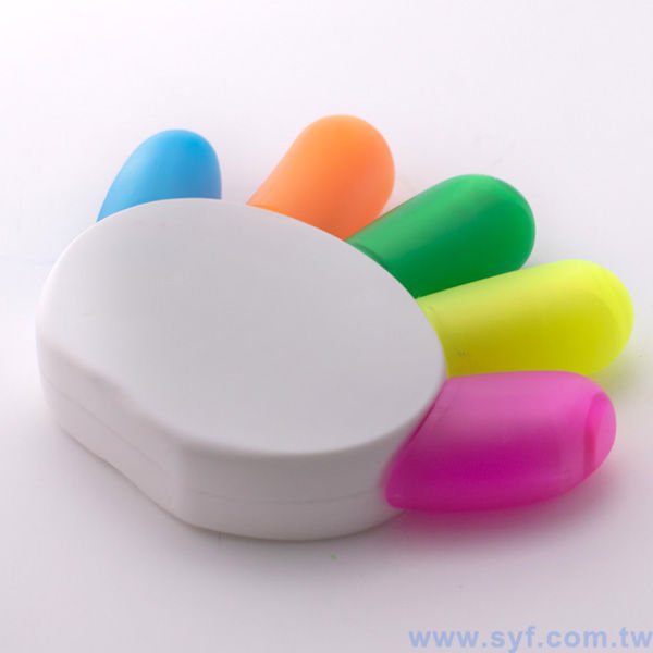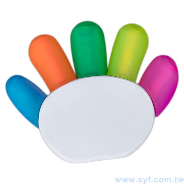 手掌造型五色螢光筆-開蓋式螢光筆-可客製化印刷logo