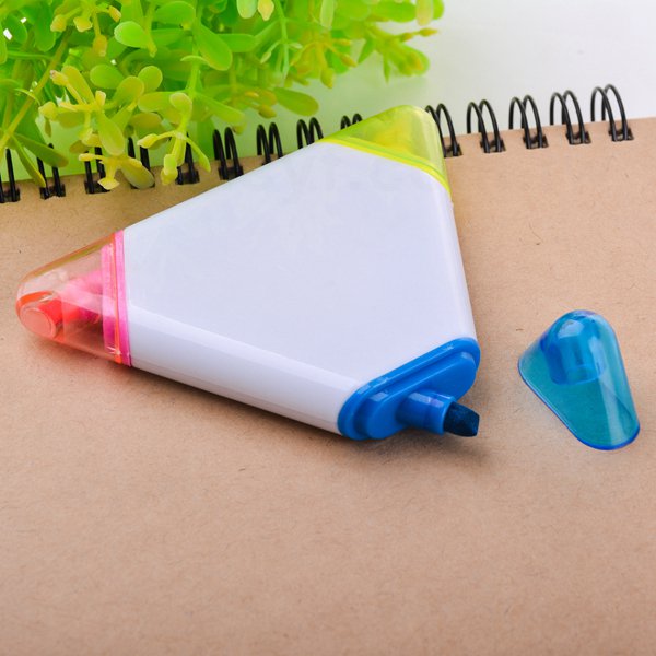 三角造型三色螢光筆廣告筆-開蓋式螢光筆