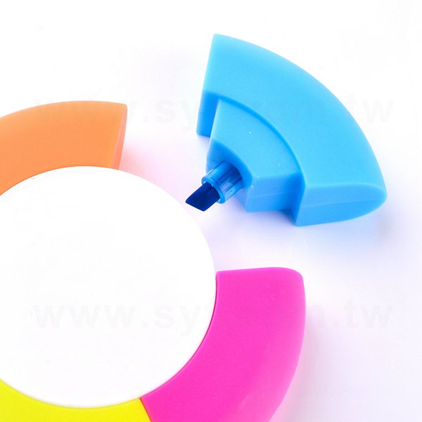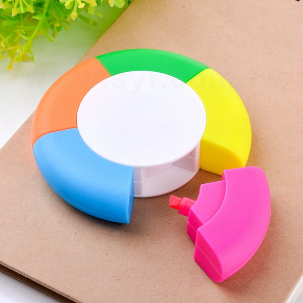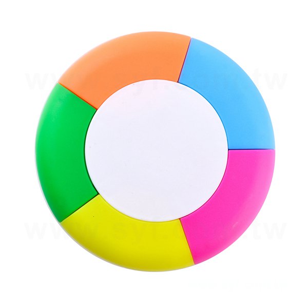 圓形造型五色螢光筆廣告筆-開蓋式螢光筆